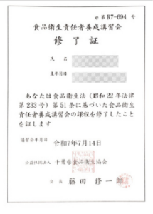 食品衛生責任者が在籍し、